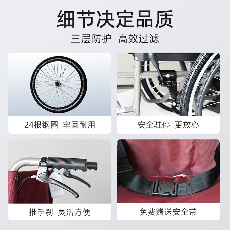 河思源新推出手動輪椅車升級款SY-LY1-0120酒紅色,與之前SY-LY1-0118相比,這款酒紅色輪椅不僅在顏色上不一樣,首先是后大輪,采用的是充氣輪胎,充氣輪椅的減震效果更好,更加的舒適。扶手圈位置,采取防滑設(shè)計。坐寬是46cm,加寬了坐寬,更加的舒適,同樣,這款輪椅是可以折疊的,方便外出放后備箱攜帶。